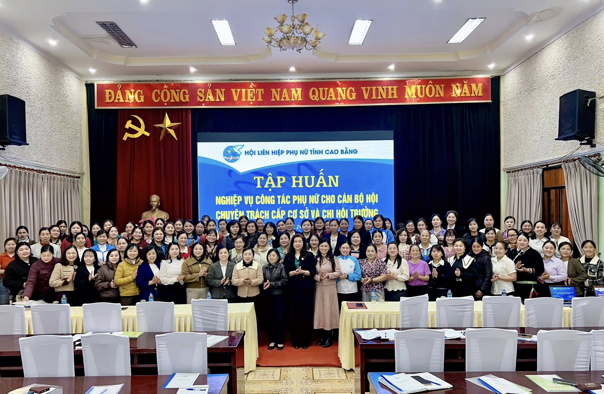 Chương trình tập huấn được chia thành 2 lớp: bồi dưỡng kiến thức, kỹ năng công tác Hội cho Chi hội trưởng phụ nữ với 152 học viên; lớp bồi dưỡng, cập nhật nghiệp vụ công tác Hội và công tác xã hội dành cho Chủ tịch, Phó Chủ tịch Hội LHPN cấp cơ sở với sự tham gia của 60 học viên.