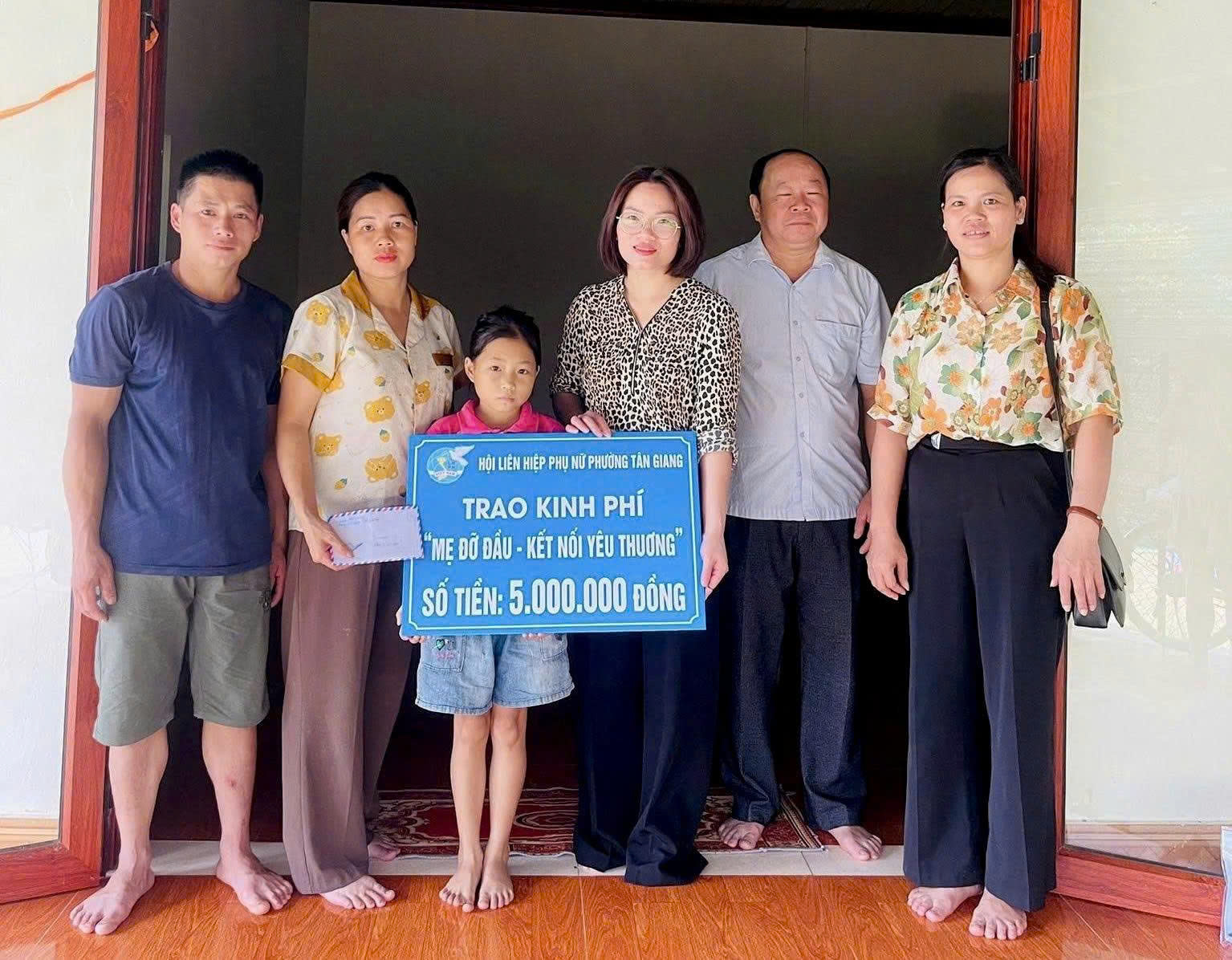 Hội LHPN phường Tân Giang trao kinh phí đỡ đầu năm học mới cho cháu La Thị Mỹ Linh, lớp 5A, Trường tiểu học Duyệt Chung