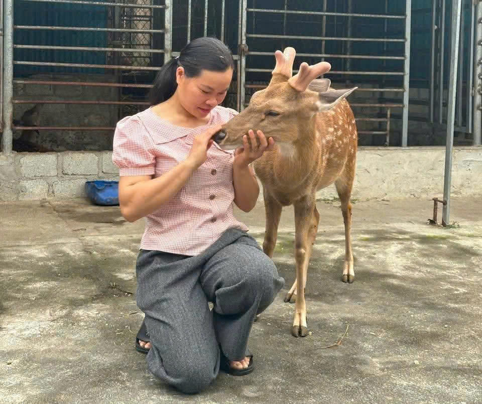 Chị Mã Thị Miên, Chi hội trưởng Phụ nữ xóm Pác Rà, xã Lý Bôn phát triển kinh tế với mô hình nuôi hươu lấy nhung.